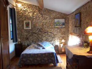 La chambre bleue au 2ème étage et la chambre dans les anciennes dépendances sont équipées d’une climatisation.