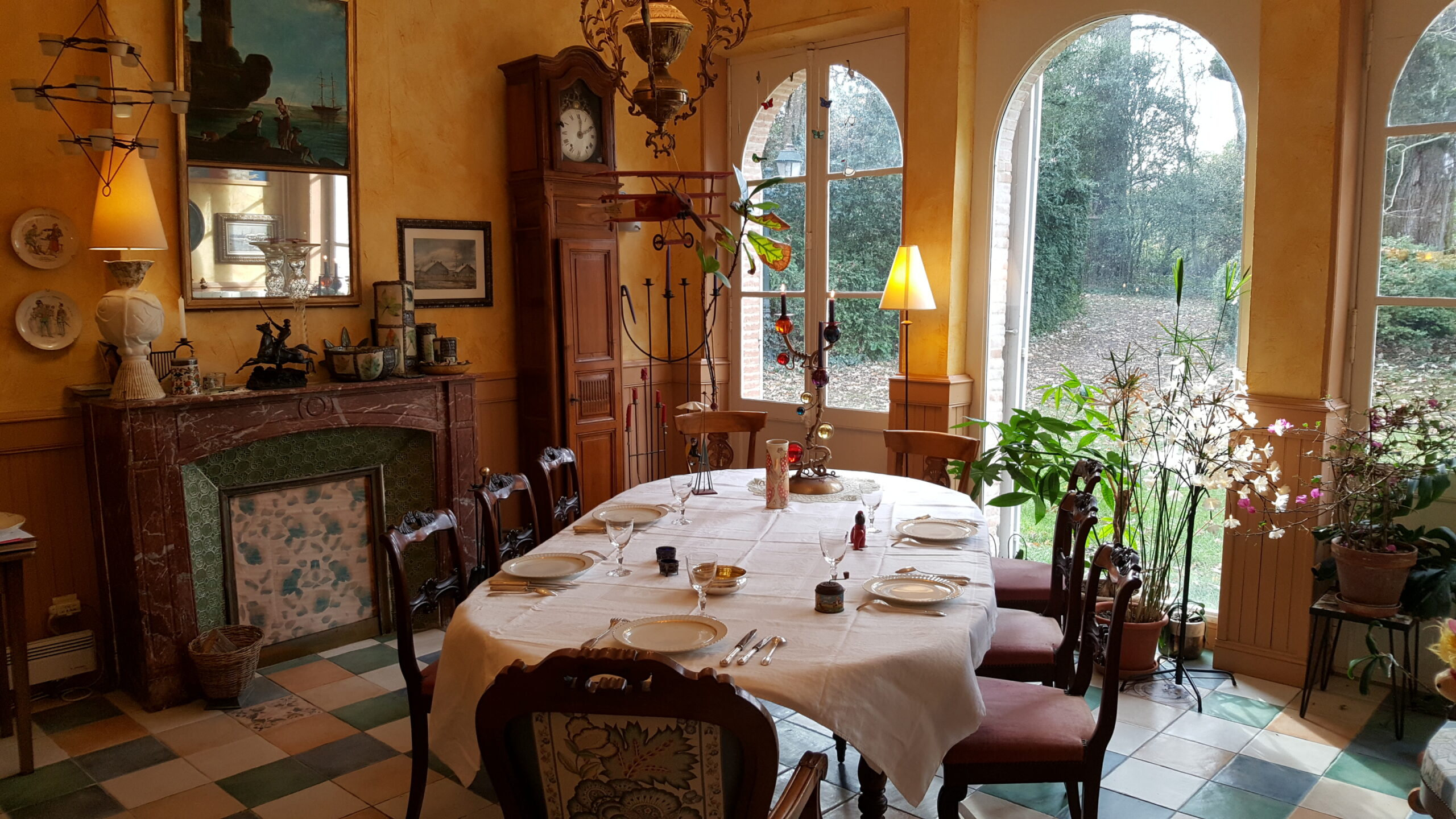Le petit déjeuner vous sera servi dans la salle à manger, le grand salon ou à l’extérieur.