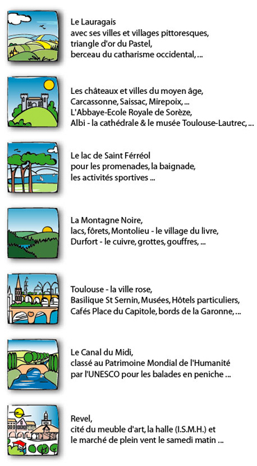Parmi les destinations à découvrir aux alentours de Revel figurent notamment :